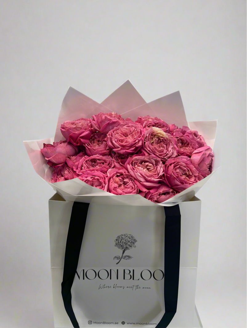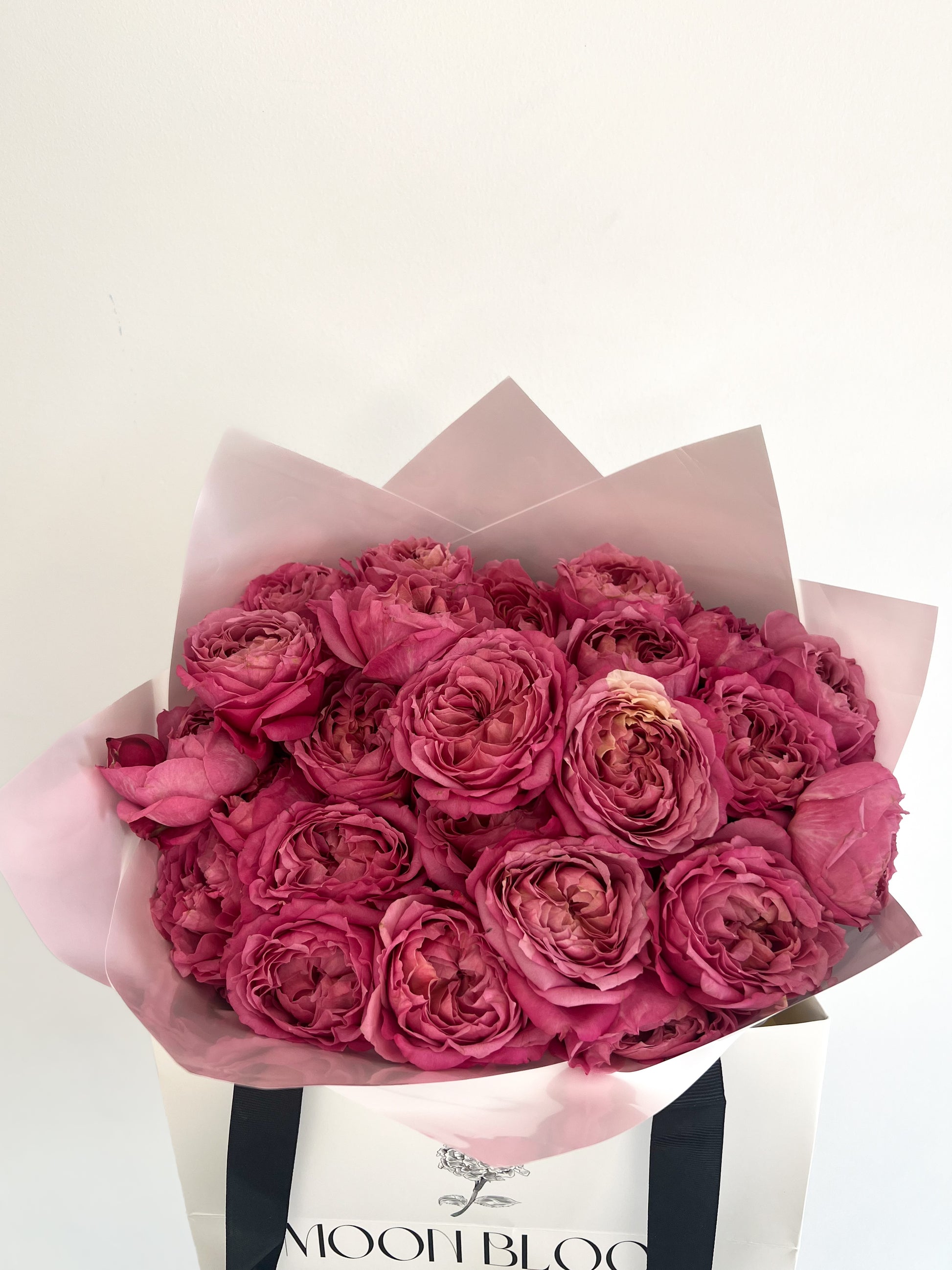 A vibrant burst of cerise Juliette blooms, full of life and romantic like a berry-stained sunset.